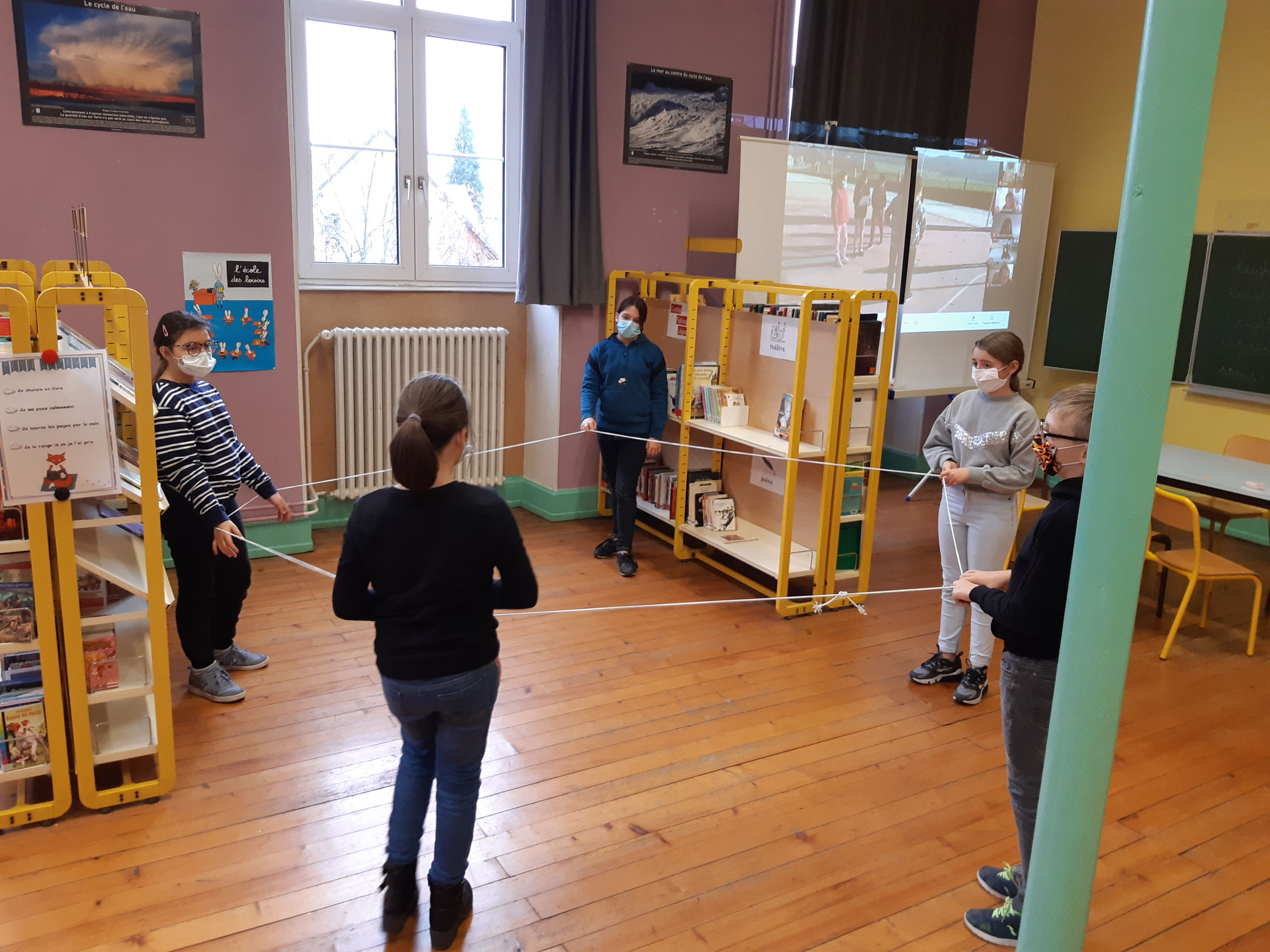 Le projet Erasmus se termine avec cette dernière semaine d'échanges, qui se tiennent en visio-conférence. Deux groupes de CM2 volontaires, des classes de Mme Lammersfeld et Mme Zeiger, ont ainsi l'opportunité de travailler les mathématiques par le jeu. Cette semaine est consacré aux thématiques "Géométrie" et "Mesures". Les CM2 pourront ensuite expérimenter les jeux avec leurs camarades, dans leurs classes respectives.